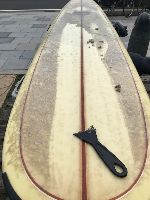 ポイントその②ある程度WAXが柔らかくなったら、専用のスクレーパーで一度になるべく多く剥がす!(WAXのゴミが飛び散るのが最小限になる)